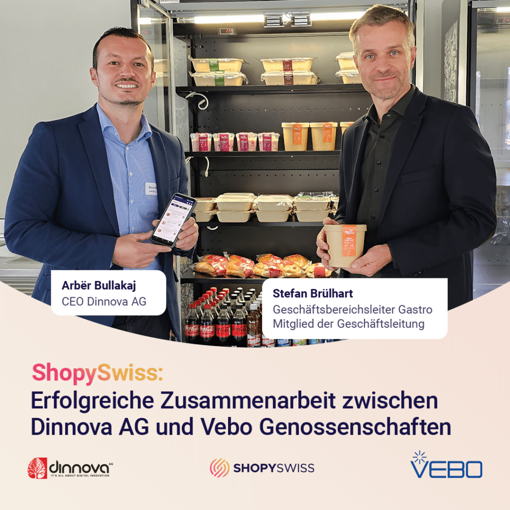 Durch die Kooperation mit VEBO Genossenschaft unterstreicht Dinnova AG erneut ihre Position als Wegbereiter innovativer IT-Lösungen. Das Zusammenspiel von modernen Kühlautmaten und der ShopySwiss Lösung revolutioniert den Ansatz im Vertrieb, wobei Einfachheit und Effizienz im Vordergrund stehen. Das begeisterte Feedback von VEBO Genossenschaft und ihren Kunden zeugt von der Relevanz und dem Erfolg dieser zukunftsweisenden Initiative.